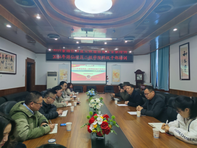 为落实学校党委组织部《关于开展内涵式高质量发展专题培训的通知》精神,11月29日上午,游仙校区二级学院科级干部及党员专题培训会在综合楼301室召开。会议由化学与化学工程学院党委书记龙武安主持,游仙校区各二级学院党委书记、科级干部参加。